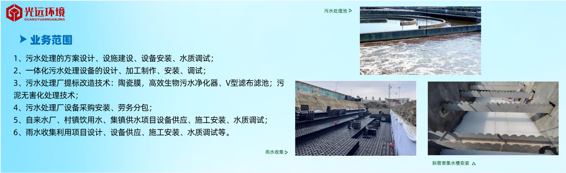公司致力于污水處理事業(yè)的研究發(fā)展,主要從事:污水處理場(chǎng)、自來(lái)水廠(chǎng)、污水處理站、村鎮(zhèn)飲用水、集鎮(zhèn)供水等項(xiàng)目的設(shè)計(jì)、新建、提標(biāo)改造和運(yùn)行維護(hù)及相關(guān)工作。